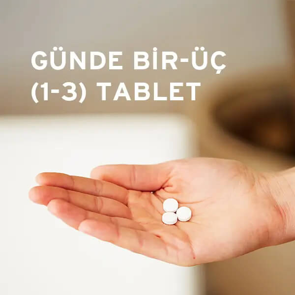 | 🕒 Kullanım Şekli | Yetişkinler için, tercihen yemek zamanı, günde 1-3 tablet çiğneyerek alınmalıdır |