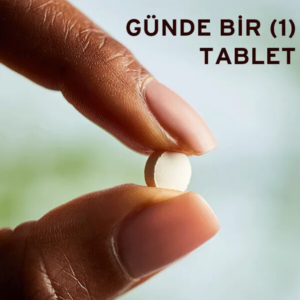 | 🕒 Kullanım Şekli | Yetişkinler için, tercihen yemek zamanı, günde bir (1) tablet. Bol su ile alınız. |