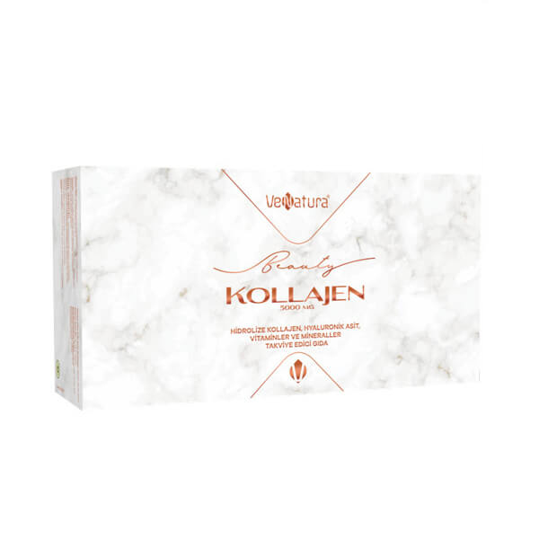 30 saşelik paketler halinde bulabileceğiniz Venatura Beauty Kolajen, vücudun yaş aldıkça azalan kolajen dengesinin korunabilmesine yardımcı oluyor. Beauty Kolajen içerisinde yer alan kolajen peptitleri vücudun azalan kolajen miktarının dengelenmesinde görev alıyor. Beauty Kolajen içeriğinde; balık kolajeni, Tip 1 kolajeni, hyaluronik asit, çinko, sülfat, selenyum ve C vitamini yer alıyor. Saşe formda bulunması nedeniyle tüketimi daha kolay olması için çilek aroması ile karıştırılarak takviye edici gıda olarak kullanılabiliyor. Siz de cilt, deri ve saçınız için gerekli olan kolajen miktarını Venatura Beauty Kolajen ile dengeleyebilirsiniz. Kullanmadan önce doktorunuza danışmayı unutmayınız.